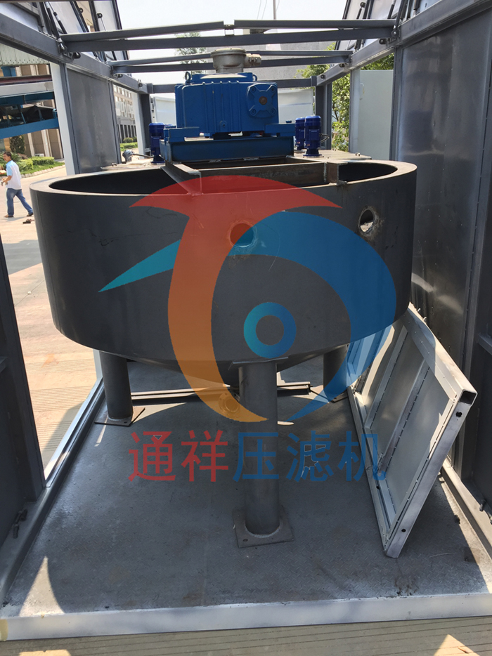 將鉆井泥漿混合液固體和液體分離。固液分離的基本原理:用高壓輸料裝置把鉆井混合液輸送進(jìn)壓濾機(jī),混合液經(jīng)過(guò)過(guò)濾介質(zhì)(濾布),固體停留在濾布上,并逐漸在濾布上堆積,形成過(guò)濾泥餅。而濾液部分則滲透過(guò)濾布,成為不含固體的清液。